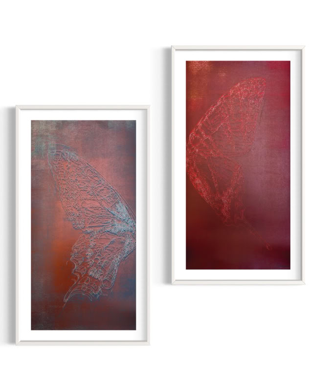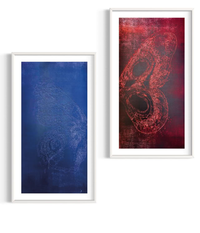 Des gravures proposées en DYPTIQUE.15 ailes gauches et 15 ailes droitespour composer vous-mêmes l’œuvre finale et créer VOTRE papillon!