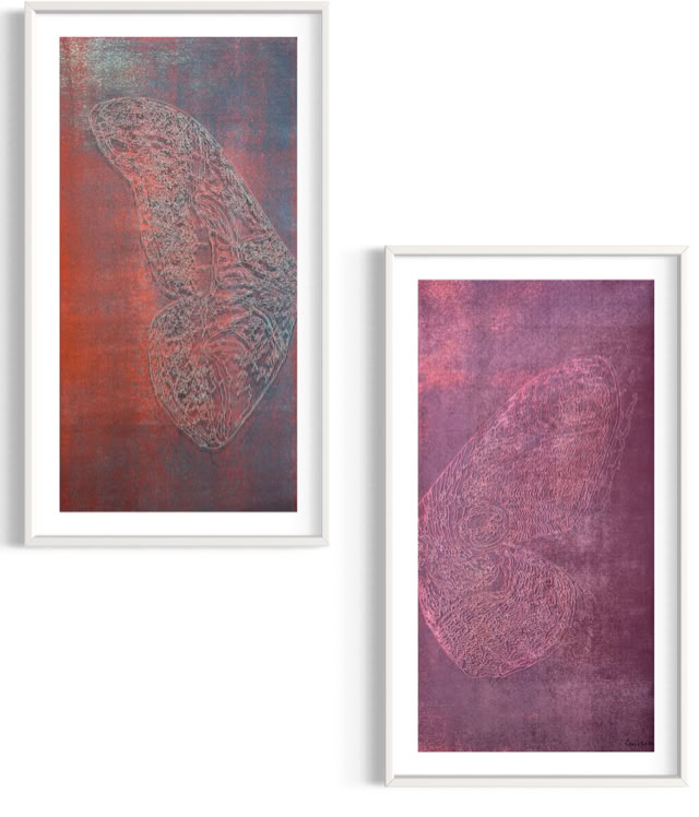 Des gravures proposées en DYPTIQUE.15 ailes gauches et 15 ailes droitespour composer vous-mêmes l’œuvre finale et créer VOTRE papillon!