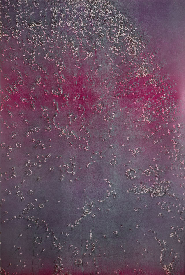 S’approcher, s’éloigner, se déplacer dans l’espace sans pouvoir faire le tour d’une illusion tridimensionnelle, et ressentir la profondeur des cratères qui traduit la force des IMPACTS...