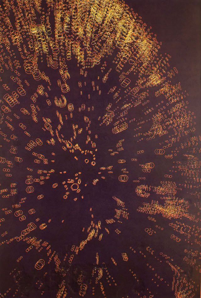 S’approcher, s’éloigner, se déplacer dans l’espace sans pouvoir faire le tour d’une illusion tridimensionnelle, et ressentir la profondeur des cratères qui traduit la force des IMPACTS...