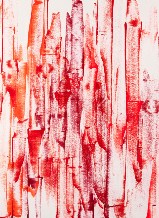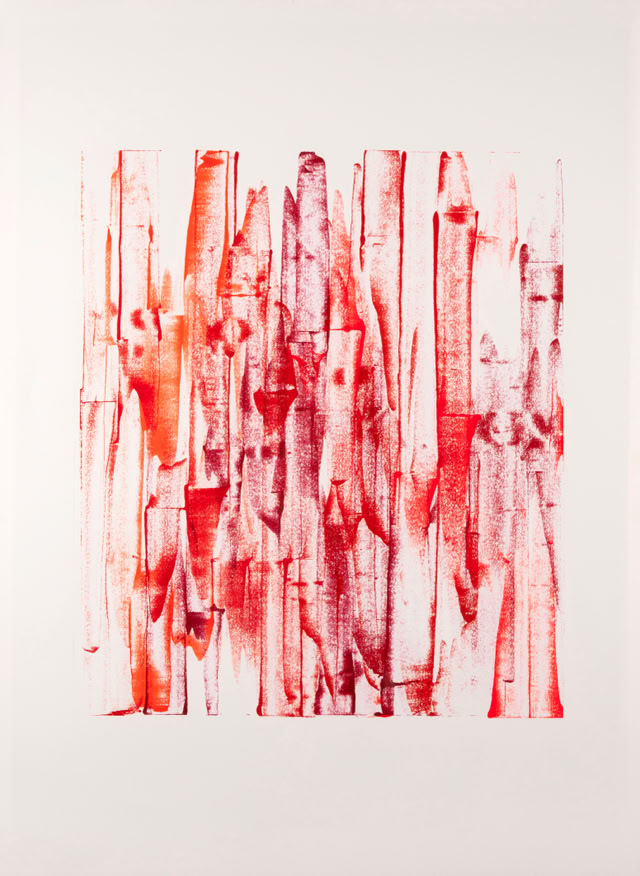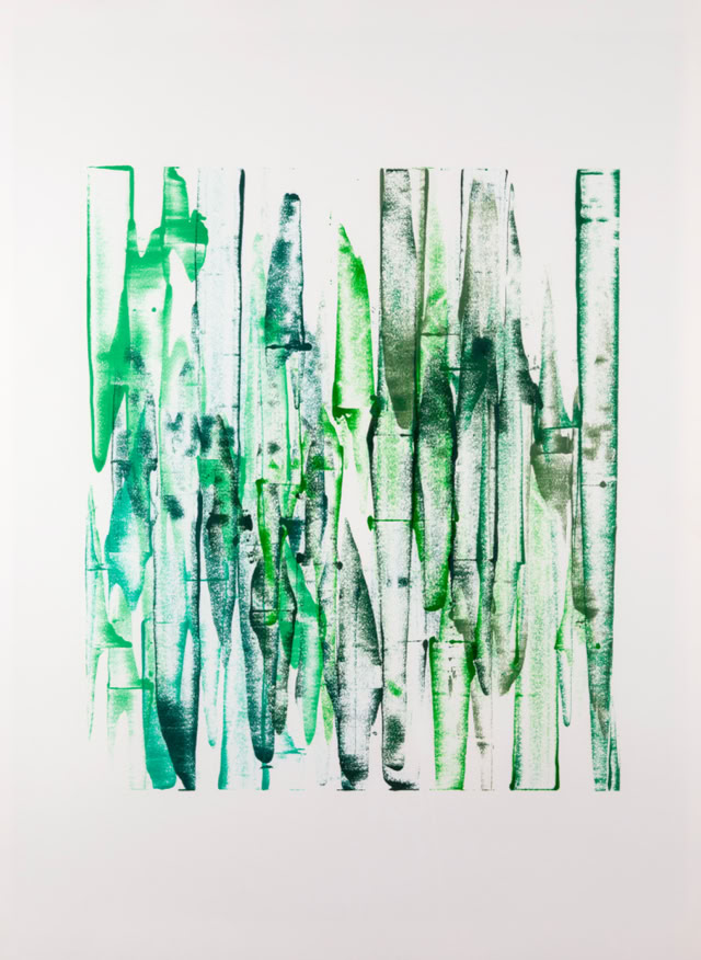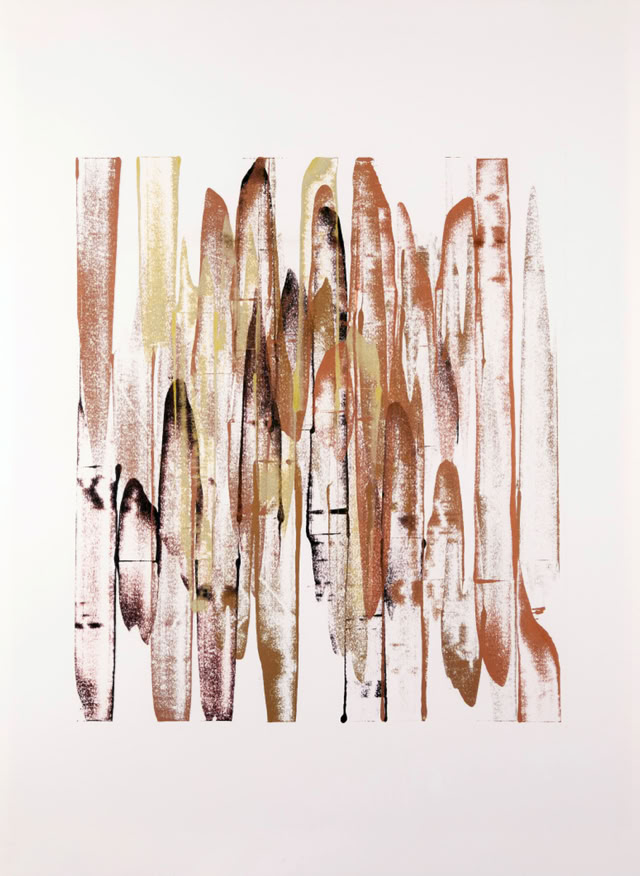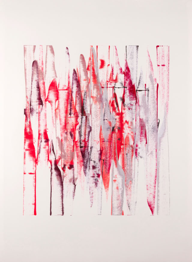 Ces impressions se présentent comme une recherche constante d'associations d'encres qui par superpositions, dispositions et intensités diverses, créent une multitude d'effets sur la base d'un "nuancier pantone" imaginaire.