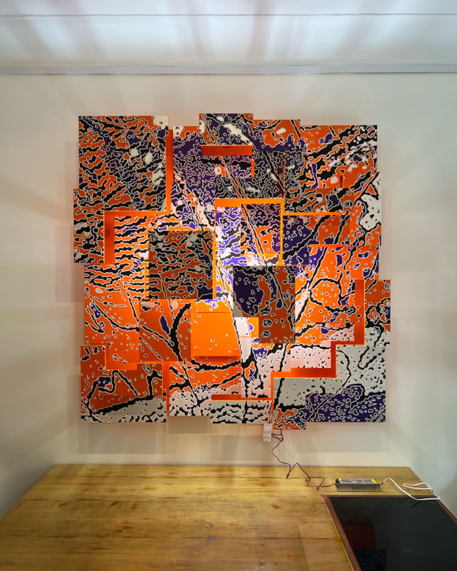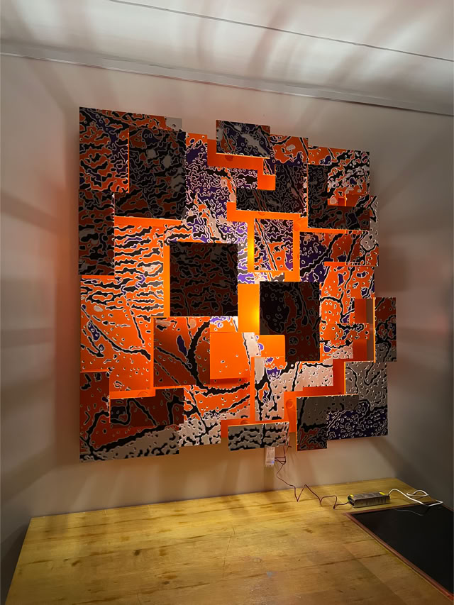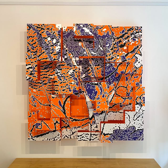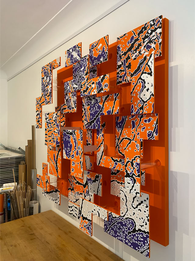Décalé sur le côté, le regardeur découvre les « dessous » de la démarche. Du post-pointillisme à la 3D, « AVANCÉES » offre une vision dynamique en relief à l’imaginaire, et donne l'envie de recomposer un sujet abstrait inspiré pourtant d'un objet réel.