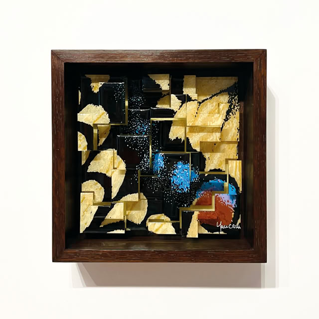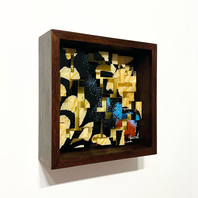 La fascination est à l’origine d’une observation minutieuse et détaillée des ailes de papillons et a inspiré l’idée d’en reproduire fidèlement les motifs et les couleurs en allant au-delà de l’apparence réelle. C’est par la matière et la création de reliefs que l’œuvre trouve sa forme finale et appelle à une nouvelle observation. Au regardeur en mouvement de trouver l’angle qui lui permettra de recomposer le dessin originel.